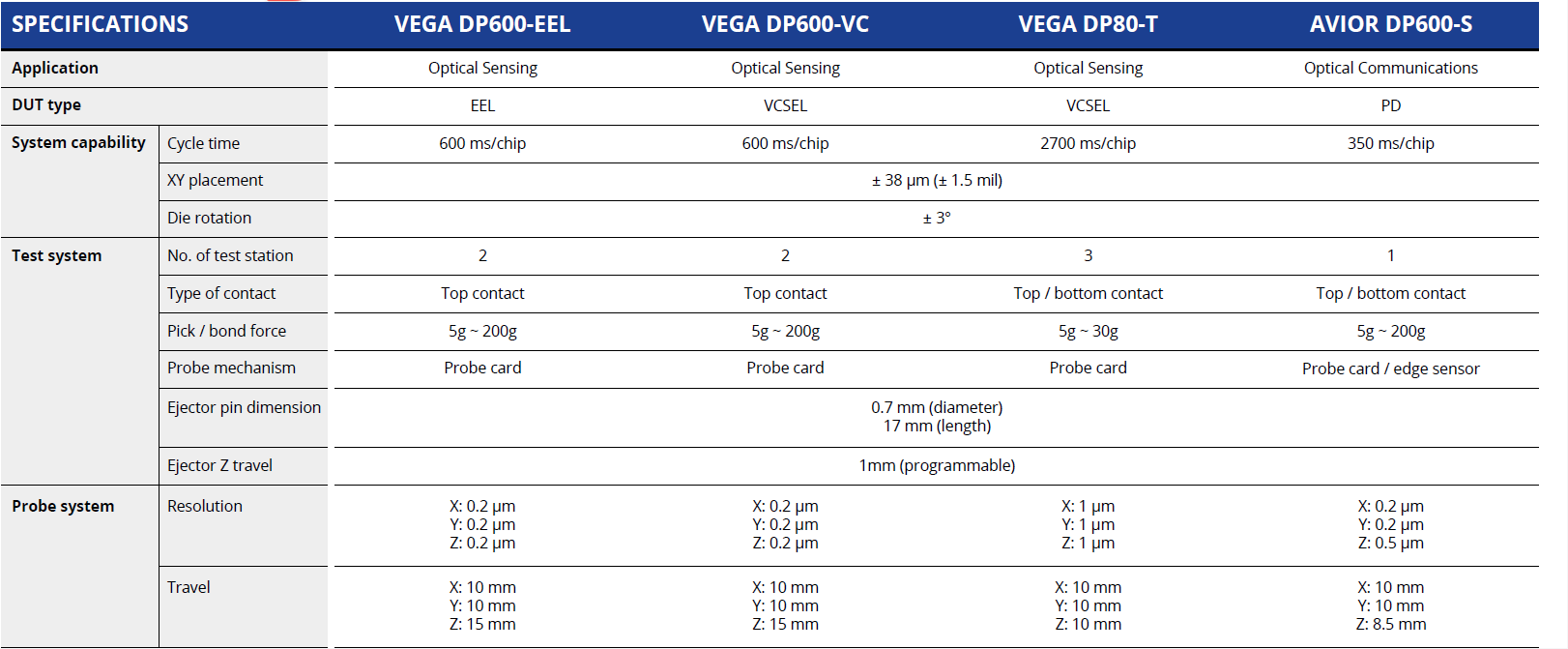 1、多样化的机种构架,支持多种物料测试形式如VCSELs, EELs,或封装级元件测试