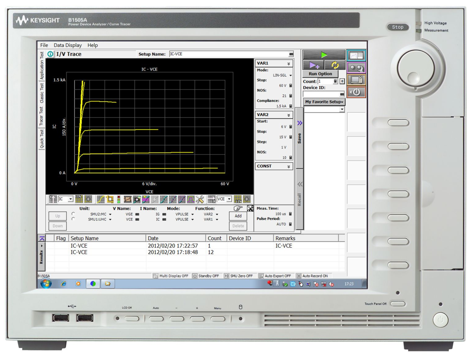 B1505A 功率器件分析仪/曲线追踪仪是用于评测 pA 以下到 10 kV/1500 A 功率器件的一体化解决方案。 具有准确测量 10 µs 脉冲和 µΩ 导通电阻的能力。这些功能有助于评测 IGBT 等新器件以及 GaN 和 SiC 等新材料。
