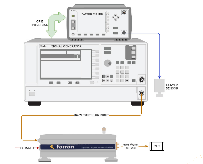 Farran公司的信号源扩频模块应用于微波信号源频率扩展,该扩频系统可以实现幅度调制、频率调制以及脉冲调制的信号输出。Farran公司可提供40-500GHz的毫米波信号源扩展模块,同时还配置相应的功率模块用来支持大功率输出,目前Farran提供的毫米波信号源扩展模块在W波段(75-110GHz)可实现输出功率20dBm,窄带的输出功率可高达30dBm(1W),可用于功率放大器、雷达、天线、RCS等器件与系统测试。