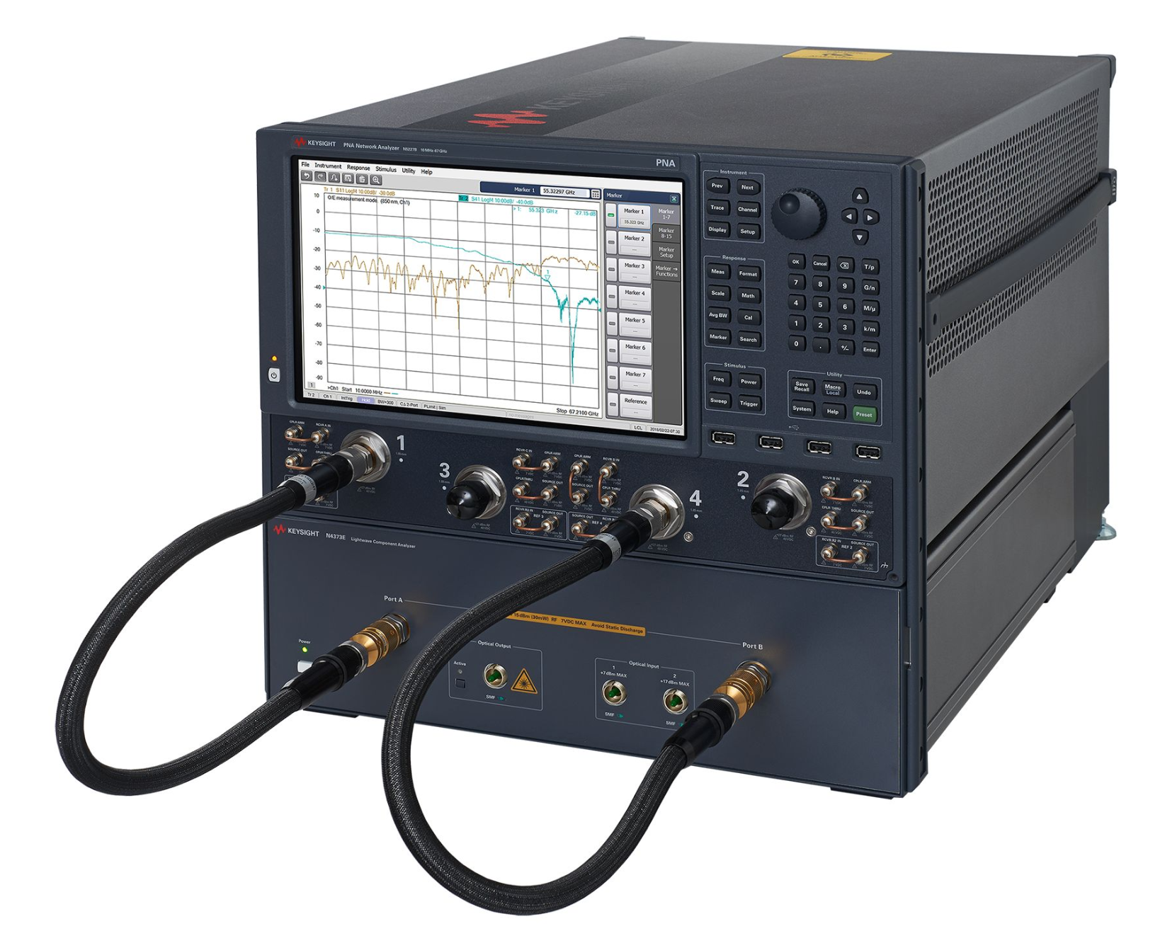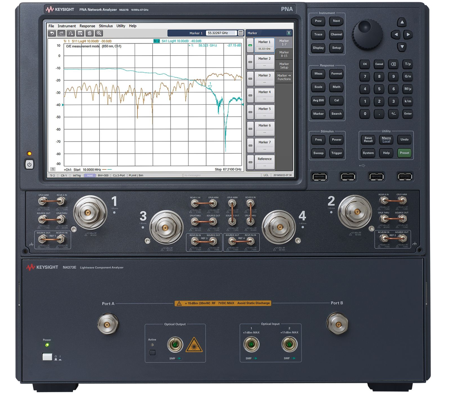 Keysight N4373E 光波器件分析仪提供了 2 端口或 4 端口配置的最新 N5224B、N5225B 和 N5227B 网络分析仪。 可以精确表征宽带光纤系统元件(例如激光器、LED、光电二极管和电光调制器)的扫描调制频率响应。这款 LCA 是测试高达 67 GHz 的电光元器件的理想解决方案。 它同样适用于测试 40G/100GbE、400Gbit/s 和 1 Tbit/s 相干传输系统、光纤无线电(RoF)以及航空航天与国防(A&D)电光测试应用中的电光元器件。